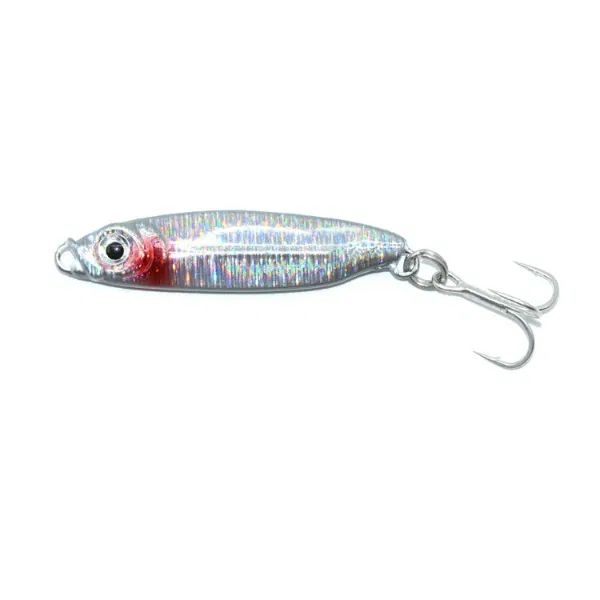 This 18g lure features a silver holographic finish with a red flash at the gill.